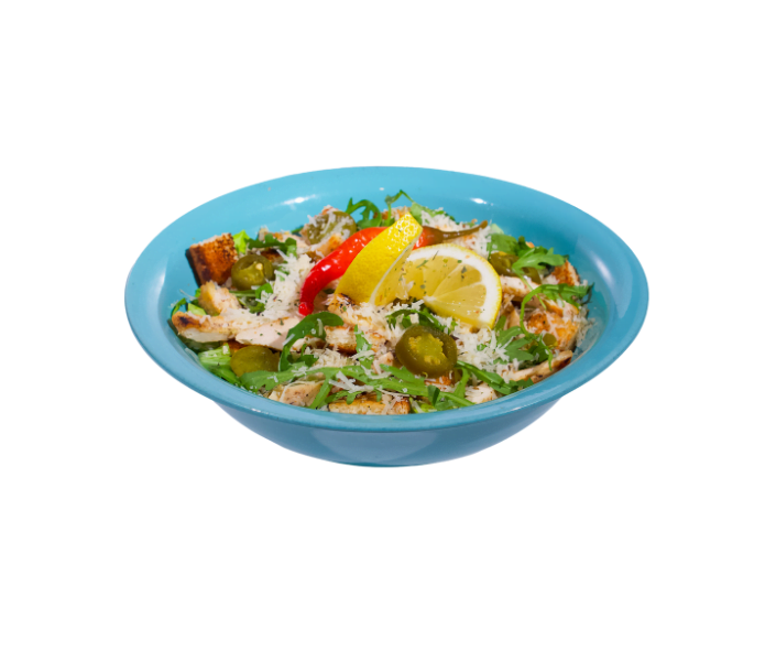 salată verde, sos Caesar, crutoane, piept de pui la grătar, parmezan, ardei jalapenos